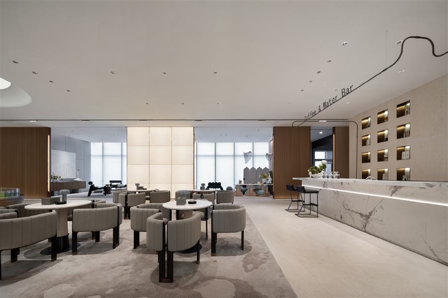 于是,在設(shè)計師的筆下,這里有靈動的光影與自然,有豐盈生活情調(diào)的藝術(shù)香薰,還有社交、閱讀、休憩等可以自由切換的多種使用模式,其中的每一幕、每一處角落,皆定格為對生活的無限暢想。
