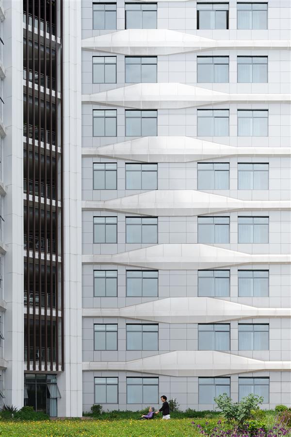 為有效降低醫(yī)院前期建造成本及后期運營人力成本和能耗成本,我們在醫(yī)院方案策劃,流程布置,功能房間設(shè)置等方面都進行了詳盡的控制:如將放置較重醫(yī)療設(shè)備的功能房間盡量設(shè)于地面一層;采用單廊式布局較復(fù)廊更節(jié)約交通面積,且能讓所有房間均能自然采光通風(fēng),大大減少了醫(yī)院的運營成本;首層通道的架空,及醫(yī)療綜合樓到餐廳設(shè)置的風(fēng)雨廊,為病人及醫(yī)務(wù)人員提供了室外活動空間,在烈日或下雨天,都可以無障礙到室外散步或者去餐廳就餐。