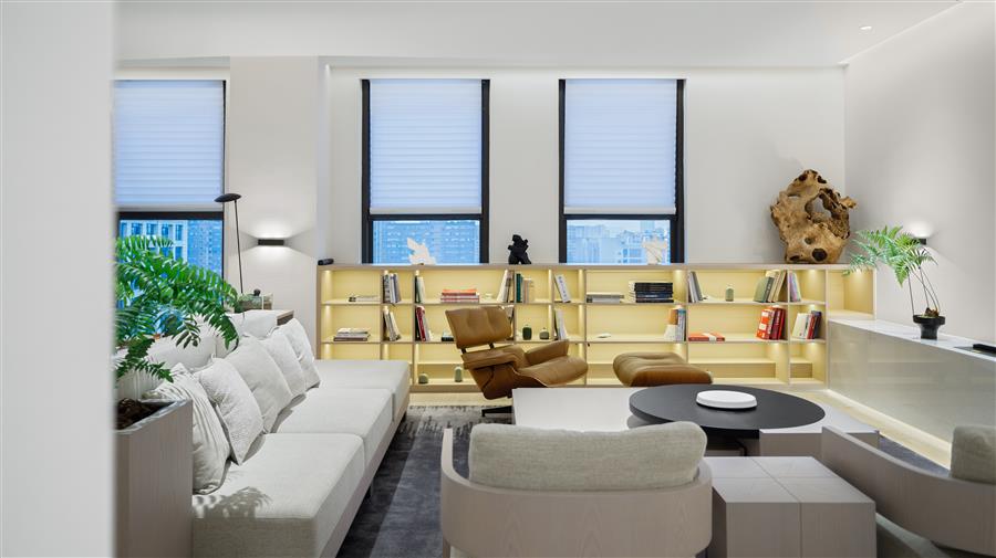摒除傳統(tǒng)的頂面照明方式,只保留空間的氛圍照明,而選擇更為友好的桌面智能燈光系統(tǒng),既是為了給員工營造更好的辦公體驗,同時也為了達到節(jié)能綠色的可持續(xù)目標。一切都是點到為止,簡潔克制。