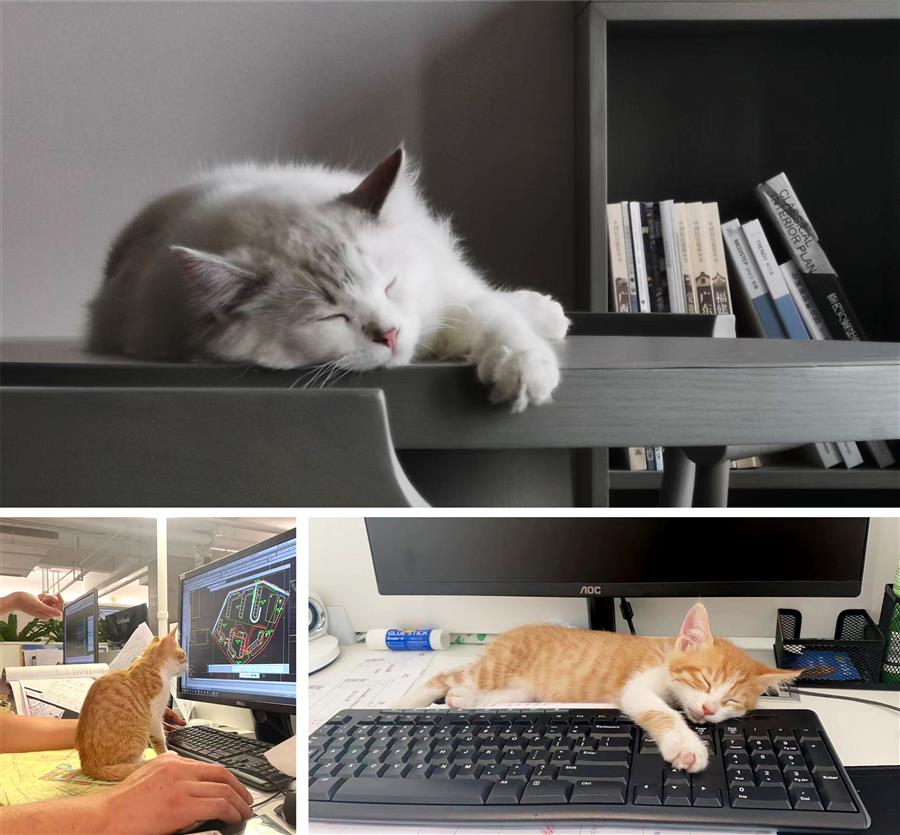 圖圖和小橘原本是流浪貓,被公司收養(yǎng)后,成為團寵。在半年時間里茁壯成長,每一個角落都有著它們自由的身影,為小伙伴們創(chuàng)造了不少的歡樂與輕松,恰如其分地緩解了緊張的辦公氛圍。