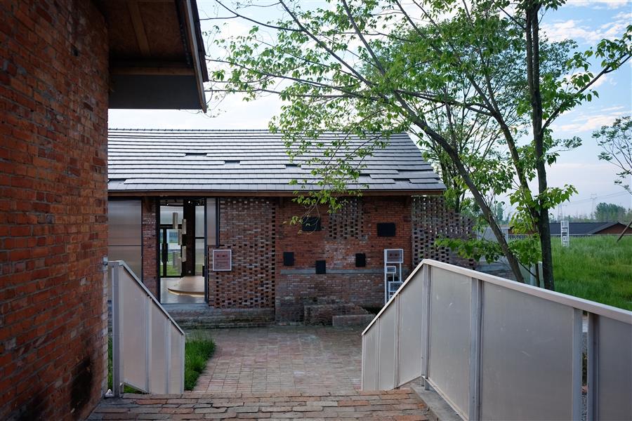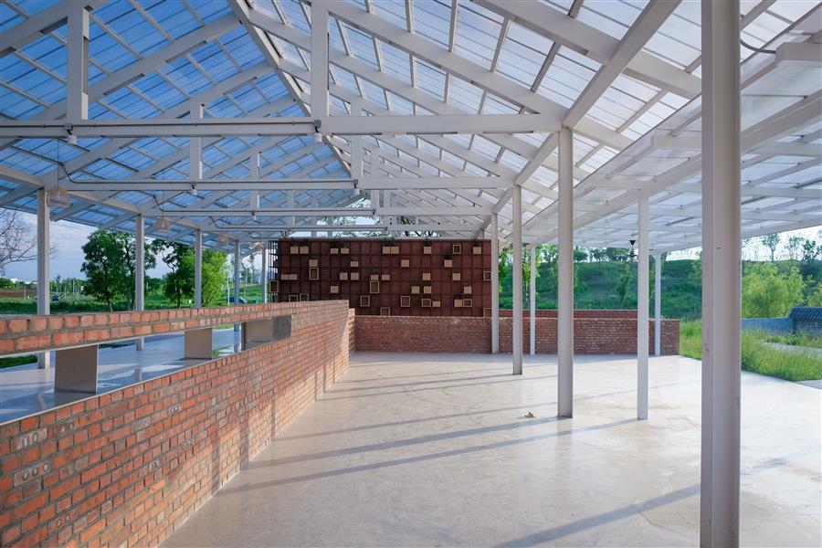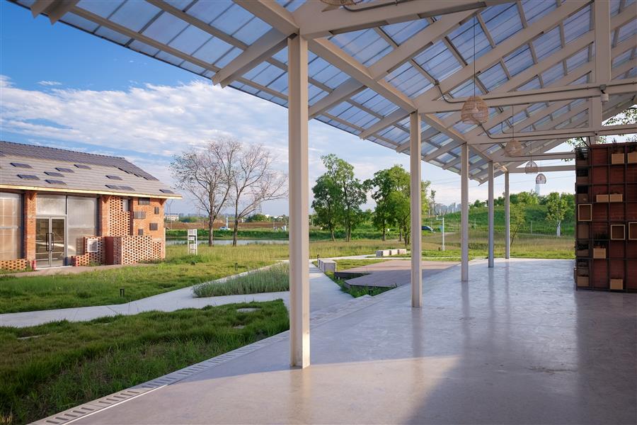 聚碳酸酯板是在鄉(xiāng)村和農(nóng)業(yè)配套設(shè)施建筑中應(yīng)用很廣的材料,具有透光、輕質(zhì)、耐候、阻燃、隔音、高強(qiáng)度等優(yōu)異性能,而且價(jià)格低廉,非常適合低成本低技建筑的應(yīng)用。紅磚和陶瓦都是原有建筑值得保留的血脈和記憶。