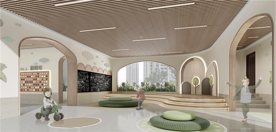 在以“回歸產(chǎn)品邏輯”為設(shè)計(jì)哲學(xué)的生活引導(dǎo)者柘壹設(shè)計(jì)眼中,普適性的場(chǎng)景功能已不能喚起消費(fèi)者對(duì)現(xiàn)代人居的憧憬感,而人們對(duì)活動(dòng)、社交、休憩、會(huì)談種種多元生活需求的注入,讓架空層設(shè)計(jì)進(jìn)入研究迭代的過程。在淮安中?!ぞ砰屑芸諏又?,柘壹設(shè)計(jì)以多重調(diào)研升級(jí)對(duì)產(chǎn)品內(nèi)容的營造,塑造親子互動(dòng)、康體設(shè)施、社交空間、老幼活動(dòng)四大場(chǎng)景體驗(yàn),將空間營造呈以豐富的互動(dòng)、合理的功能,直觸社區(qū)聚場(chǎng)的本質(zhì),建構(gòu)全生命周期體驗(yàn)中的社區(qū)交互場(chǎng)域。