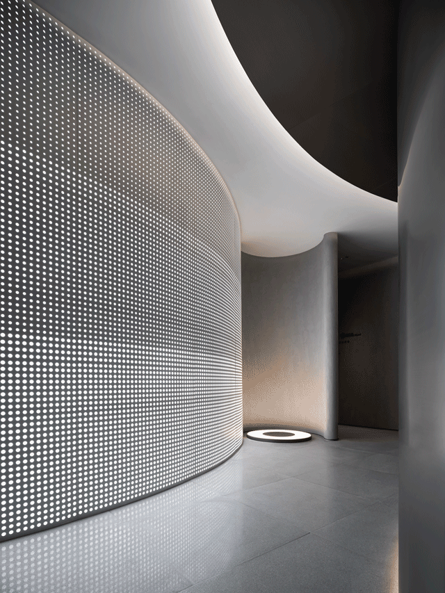 以光為語(yǔ)言,以柔美曲線為指引,設(shè)計(jì)師結(jié)合對(duì)構(gòu)圖、色彩、畫面比例的細(xì)致考究,力求于藝術(shù)化與未來(lái)感相融的場(chǎng)域建構(gòu)中,令光影形成有韻律感的舞動(dòng),讓每一位走進(jìn)的客人,隨著空間的變換感受不同角度下的光影之美。