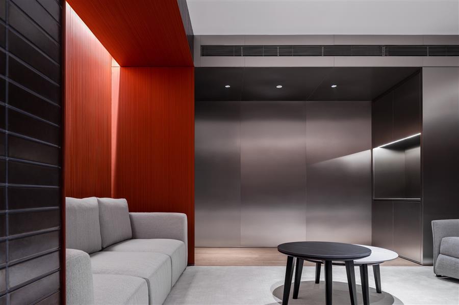 在此,設(shè)計(jì)師試圖糅合一種矛盾:感性的戲劇化場(chǎng)景與理性的產(chǎn)品技術(shù)。這一過(guò)程中,帶著地域印記的北京紅墻元素,借以嚴(yán)謹(jǐn)專業(yè)的燈光角度,融合為富有特色的記憶點(diǎn),令日常生活的文化風(fēng)韻以可見(jiàn)可感的形式,繪就為空間的溫度。