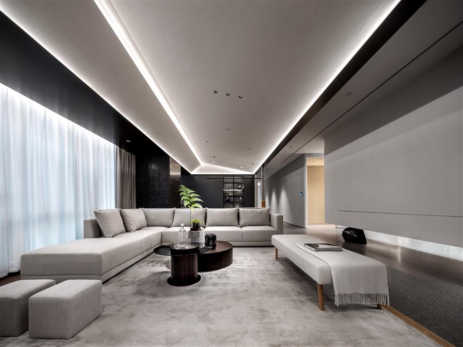 步入于此,以現(xiàn)代風(fēng)格為基底,設(shè)計(jì)透過(guò)全黑外立面、金屬配件與立體線條的融合,賦予空間硬朗挺括的質(zhì)感,帶給觀者簡(jiǎn)潔而富有美感的視覺(jué)體驗(yàn),