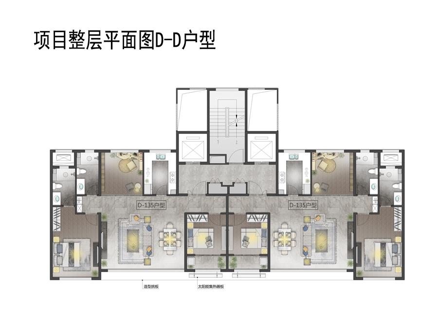 D戶(hù)型的書(shū)房客廳餐廳為一體空間,南部通透,主臥系統(tǒng)功能完善,動(dòng)線(xiàn)明晰,溫馨適意。