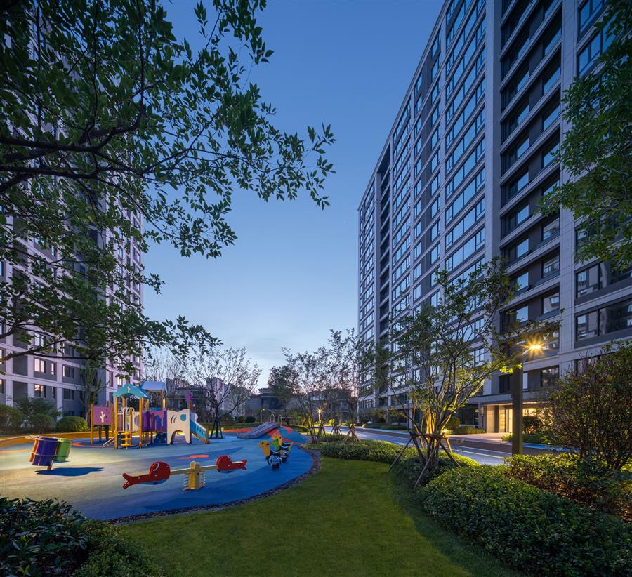 項(xiàng)目深入理解城市精英的生活需求,創(chuàng)造了“以人為本”的建筑空間。圍繞“綠道串聯(lián)、慢道成環(huán)”的設(shè)計(jì)思路,為社區(qū)帶來(lái)了完善的慢行道路公共空間。