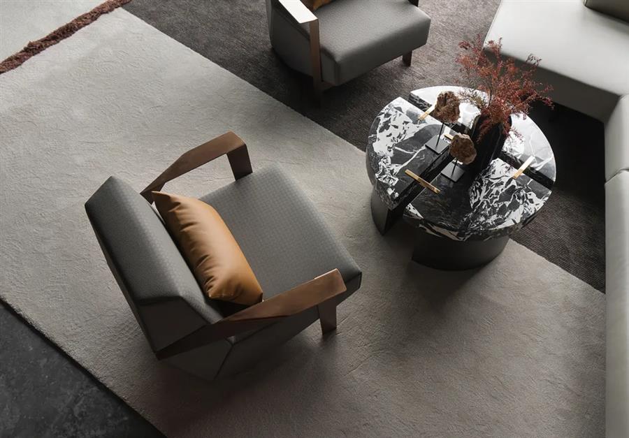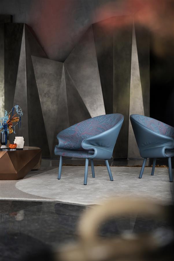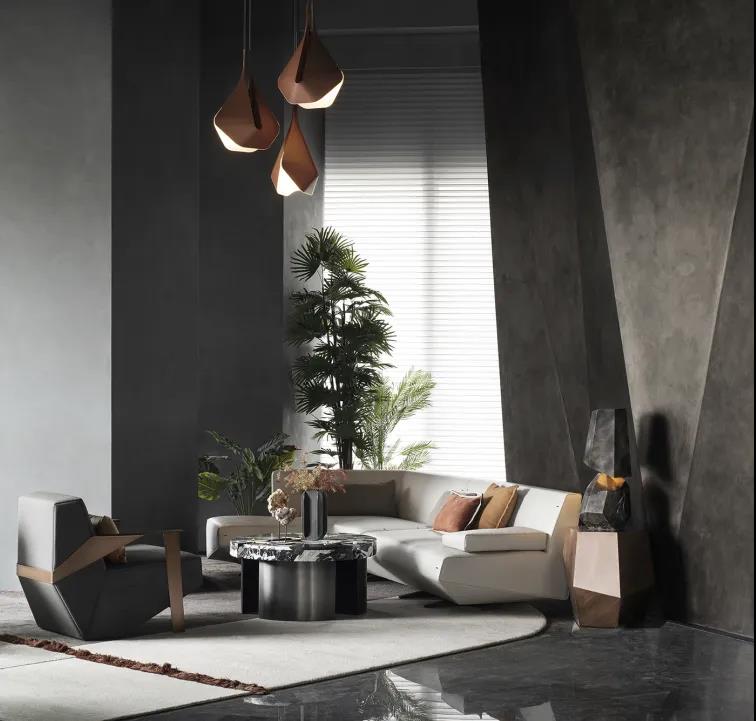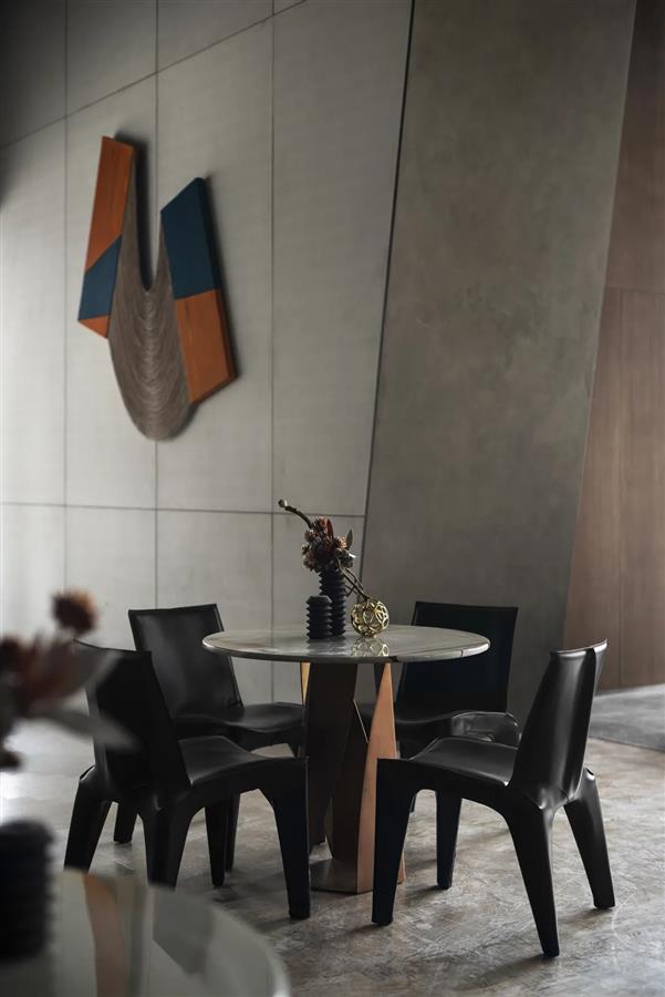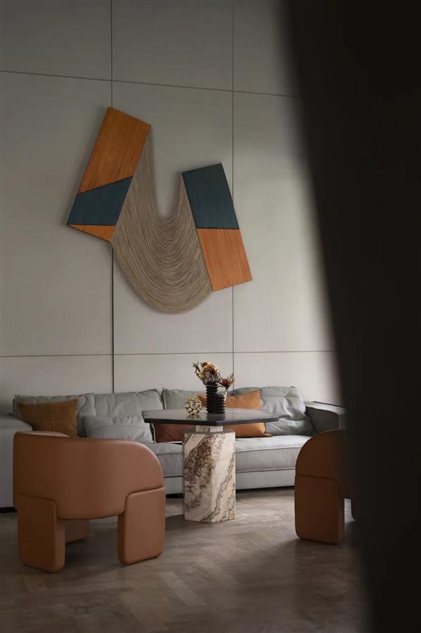 墻體的棱角構(gòu)件來(lái)自建筑的手法,在設(shè)計(jì)師的巧妙打磨下,營(yíng)構(gòu)出如同雕塑般的硬裝界面,讓立體而有型的截面兼具了開(kāi)放性和復(fù)合性。不同于平鋪直敘的常規(guī)陳設(shè),別具一格的車線是意大利品牌Moroso單人椅的靈魂所在,由點(diǎn)及面的燈具構(gòu)成了藝術(shù)抽象化的光之陣列。