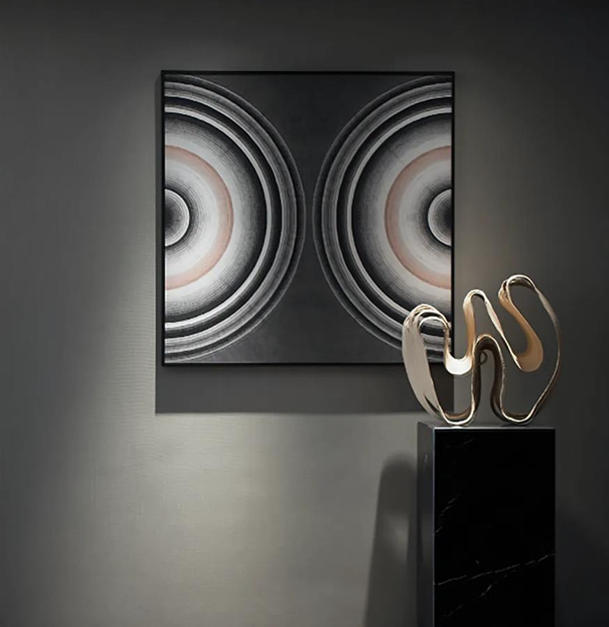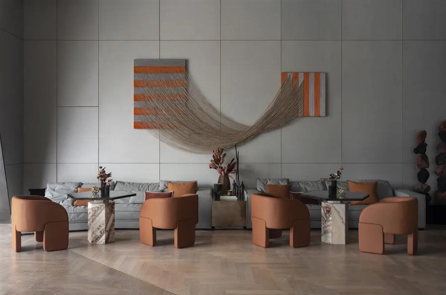 布魯盟設(shè)計(jì)以一貫擅長(zhǎng)的人文手筆打磨硬裝的整體形神,在傾斜角度下,以矩形分割的墻體來(lái)區(qū)別不同功能區(qū),讓墻體的幾何畫面感與大理石地面的花紋肌理相互映襯。同時(shí),設(shè)計(jì)師回溯城市記憶來(lái)塑造空間故事線,融合高級(jí)灰的硬裝基底,解構(gòu)“絲路”之文明脈絡(luò),在理性之上開(kāi)啟藝術(shù)意境的另類闡釋。