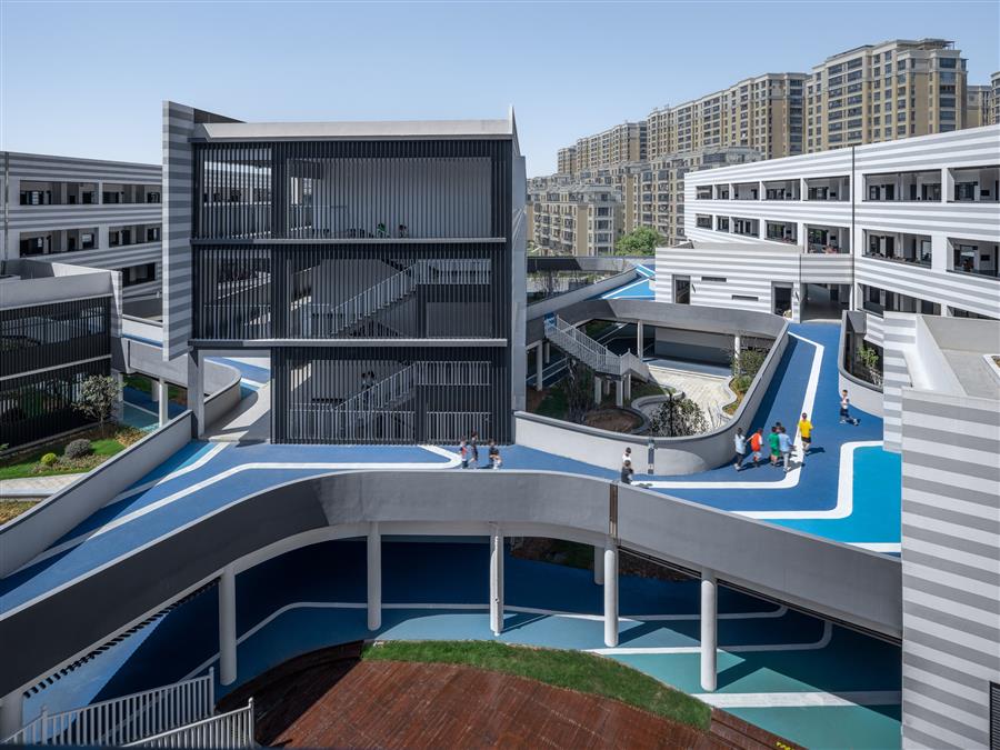 Quzhou Xinhua No. 2 Primary School, designed by LYCS Architecture, has officially opened recently. The project was constructed in accordance with the latest "Standardized Schools for Compulsory Education in Zhejiang Province" with the highest standard. The GFA of the school is approximated my 37,182 sqm, allowing 48 classes open at the same time.