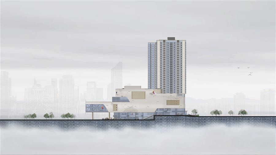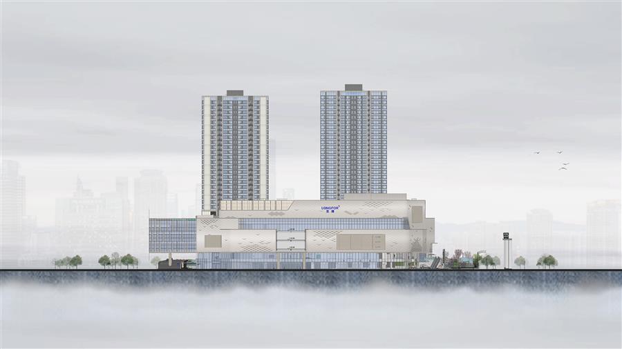 設(shè)計(jì)采用“疊蛋糕”的方式將中高區(qū)體量層層后退,使建筑和諧融入城市空間。建筑形態(tài)既滿足城市退界的規(guī)范要求,同時(shí)緩和建筑體量對(duì)城市道路的壓迫感。