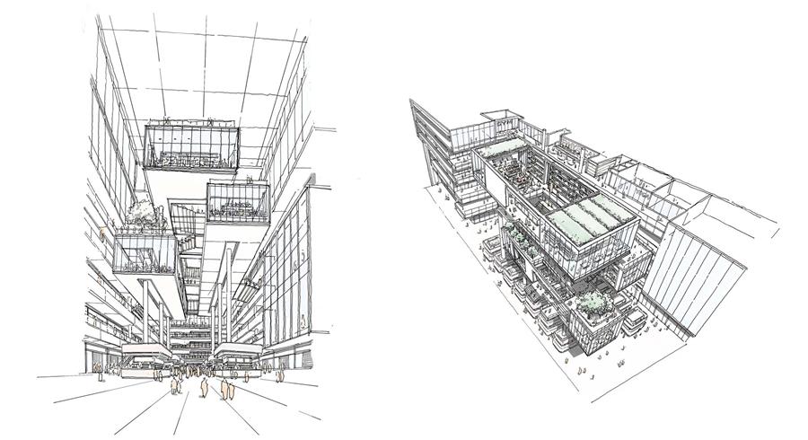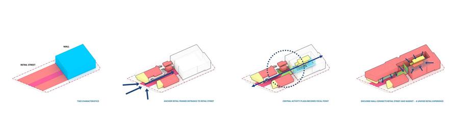 在兩位設(shè)計(jì)負(fù)責(zé)人Ted Givens和Chin Yong Ng的共同領(lǐng)導(dǎo)下,這個(gè)新項(xiàng)目的概念打破了傳統(tǒng)的購(gòu)物中心設(shè)計(jì),而是從傳統(tǒng)的市場(chǎng)廣場(chǎng)中獲得靈感,為社區(qū)創(chuàng)造了一個(gè)充滿活力的中央聚會(huì)場(chǎng)所。