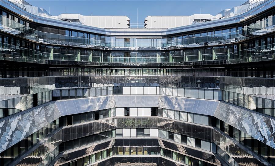 重新致密化是通過一個(gè)兩層的擴(kuò)展來實(shí)現(xiàn)的,這個(gè)擴(kuò)展與建筑的輪廓相一致,因此幾乎不知不覺地融入了現(xiàn)有結(jié)構(gòu)的外觀。八層辦公大樓擁有寬敞的戶外區(qū)域,提供約40,000平方米的可用空間,可以俯瞰鄰近的宮殿,列支敦士登公園,并穿過市中心到圣斯蒂芬大教堂。與本地和長(zhǎng)途交通網(wǎng)絡(luò)的最佳連接是前瞻性的,所有主要的公共交通工具都可以在幾分鐘內(nèi)到達(dá)。與附近多瑙河沿岸自行車道的連接也同樣理想。弗朗西斯一樓有安全的自行車停車位。建筑的智能化在供應(yīng)和處理系統(tǒng)中也很明顯:這是通過地下裝載場(chǎng)組織的,從而將地上的運(yùn)輸流量降至最低。