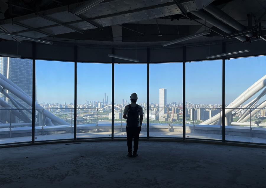 Consideration for the Environment and Sustainability – In this project, we aimed to create open and sustainable architecture that takes advantage of Shanghai's warm climate. Compared to conventional high-rise buildings with closed, fully air-conditioned, energy-consuming systems, this building has many non-air-conditioned indoor and outdoor areas. While using only safe, readily available materials such as glass and aluminum, we pursued a level of detail that is possible only with the scale of a spacious skyscraper. We efficiently achieved a distinctive design during the construction phase using materials and methods that minimize waste. To enhance the energy efficiency of the air conditioning, the standard 400mm-wide exterior fins were extended by 200mm outward, reducing aluminum usage while achieving the same solar shading effect as 600mm-deep fins. Combined with Low-E glass, this prevents excessive energy influx, reduces energy loss through windows, and minimizes wasteful air conditioning energy consumption. Additionally, natural ventilation hoppers are integrated near the windows. This allows occupants to leverage the steady local wind by opening windows themselves and promotes natural ventilation through pressure differences in the atrium, without mechanical power assistance.