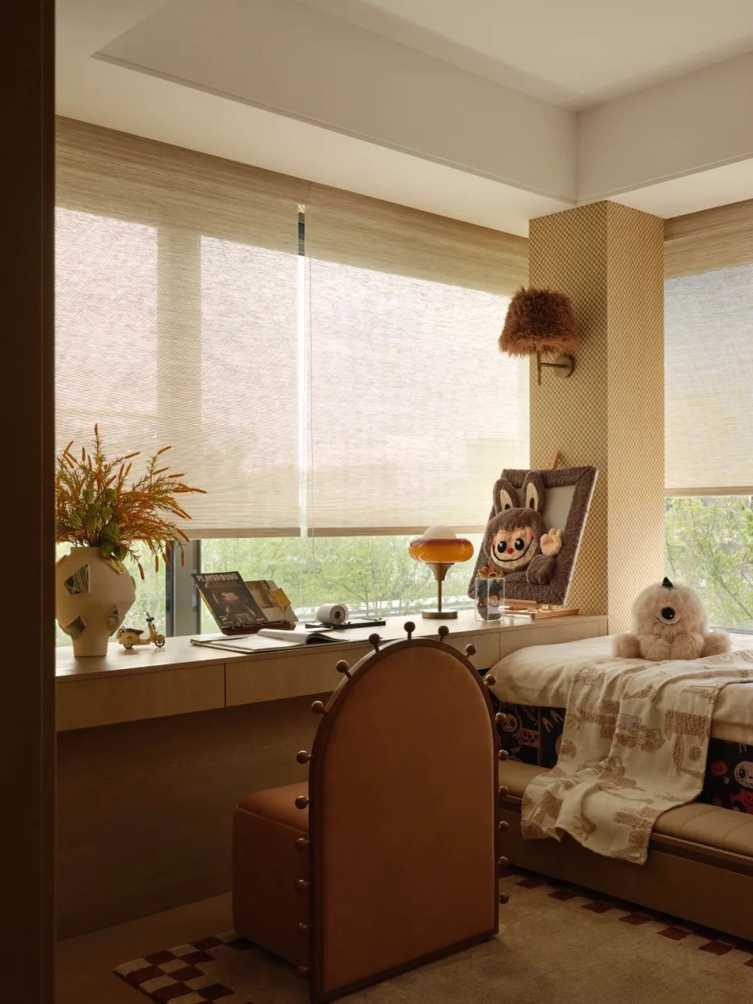 同時,每個臥室都配備飄窗,實現(xiàn)全室采光,讓光線自然貫穿整個居住空間。充足陽光與開闊視野不僅提升居住舒適度,也為家庭成員提供了更多可能性——孩子在陽臺觀察樹梢和自然變化,長輩享受明亮安靜的休憩環(huán)境,工作與生活的切換也更為高效自然。