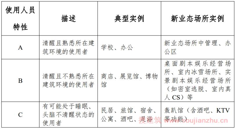 注:在同一棟建筑內(nèi)的不同功能或同一場(chǎng)所內(nèi)的不同區(qū)域可能具有不同的人員特性。