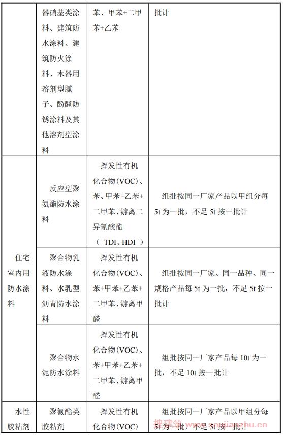 3.2.4 成品住宅工程中所使用的的混凝土外加劑,氨的釋放量不應大于0.10%,檢測方法應符合現(xiàn)行國家標準《混凝土外加劑中釋放氨的限量》GB18588的規(guī)定。能釋放氨的阻燃劑、防火涂料、水性建筑防水涂料氨的釋放量限量不應大于0.50%,檢測方法宜符合現(xiàn)行行業(yè)標準《建筑防火涂料有害物質(zhì)限量及檢測方法》JG/T415的規(guī)定。