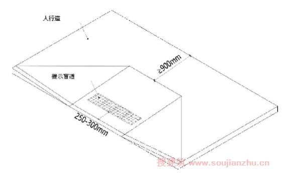 3.2.7 距坡道起點(diǎn)和終點(diǎn)250mm~300mm處宜設(shè)提示盲道,提示盲道的長(zhǎng)度應(yīng)與坡道的寬度相對(duì)應(yīng)。
