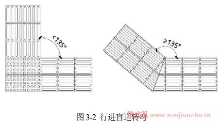 3.1.4 井蓋、箅子的孔洞會(huì)對(duì)輪椅的通行和盲杖的使用帶來(lái)不便和安全隱患,所以應(yīng)盡量避免在無(wú)障礙通道上設(shè)置井蓋、箅子。當(dāng)無(wú)法避免時(shí),限制孔洞的尺寸以避免盲杖或輪椅小輪陷入孔洞;規(guī)定條狀孔洞的走向,以避免盲杖滑出。