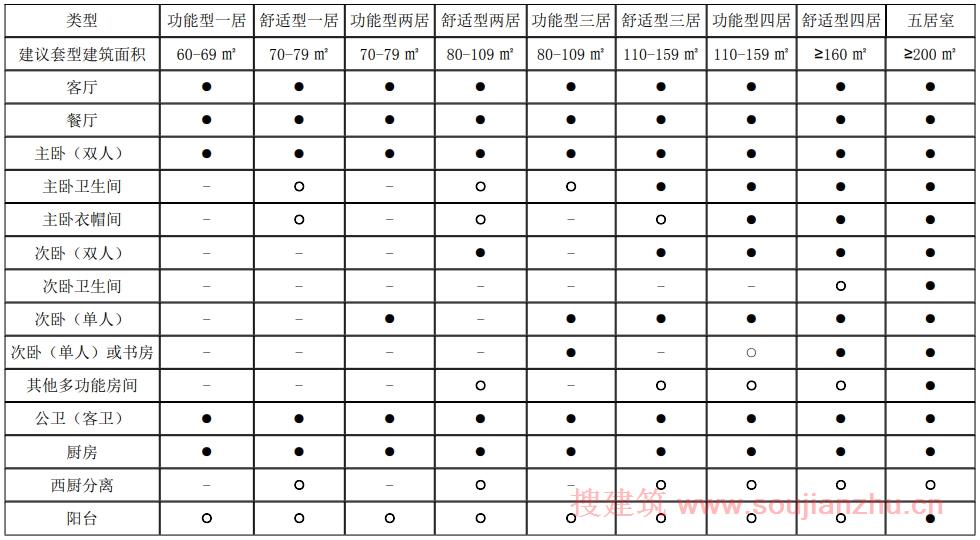 附表:住宅面積與功能配置標(biāo)準(zhǔn)建議表