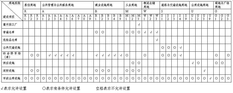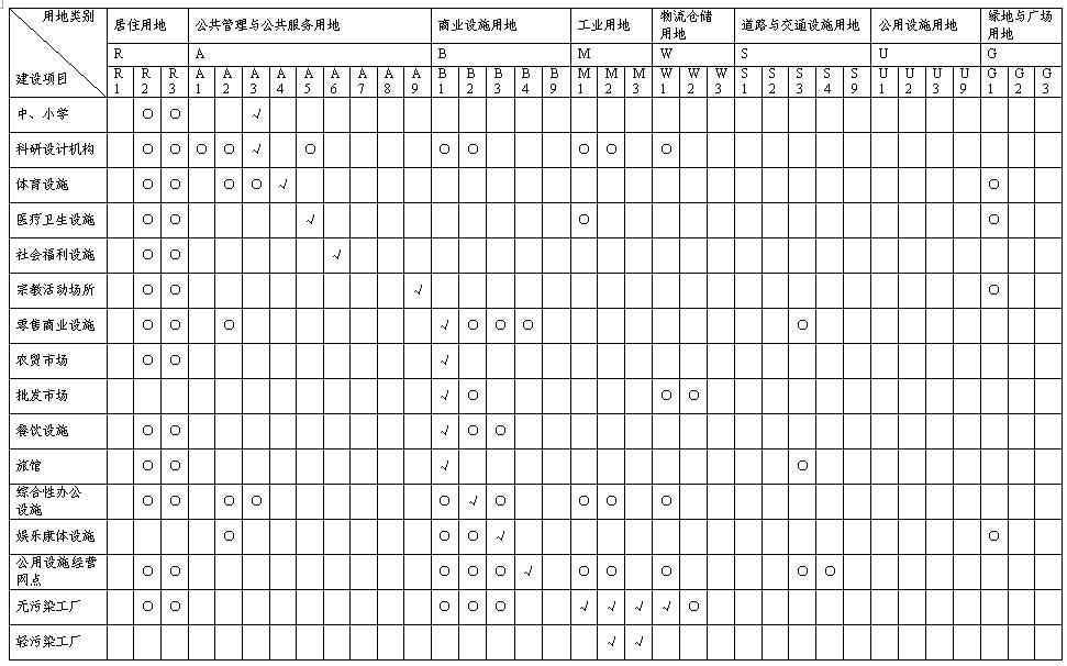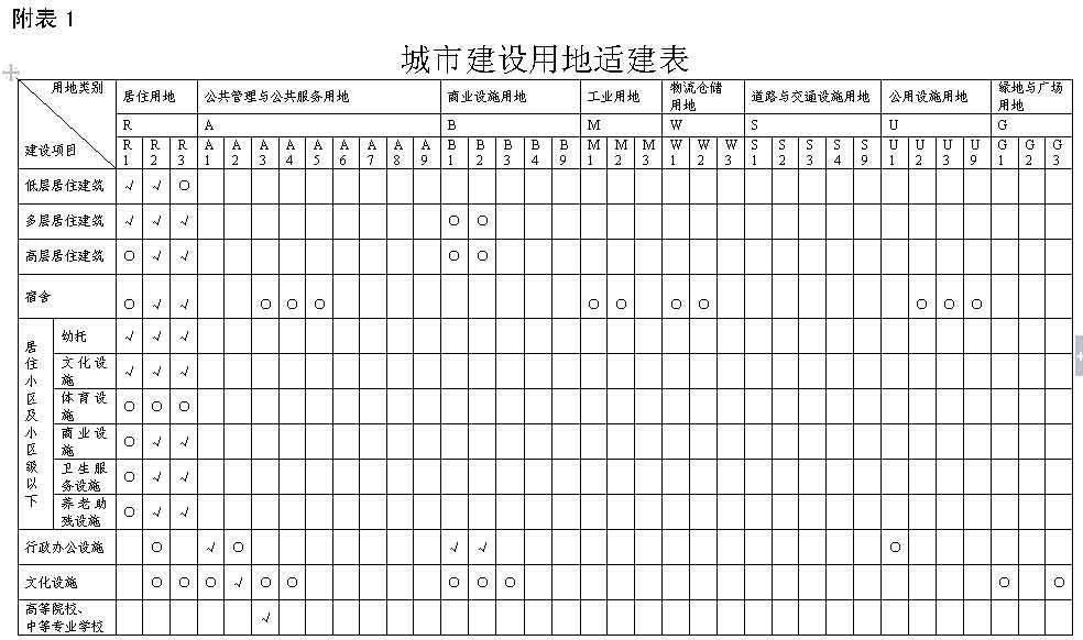 附表1 城市建設(shè)用地適建表