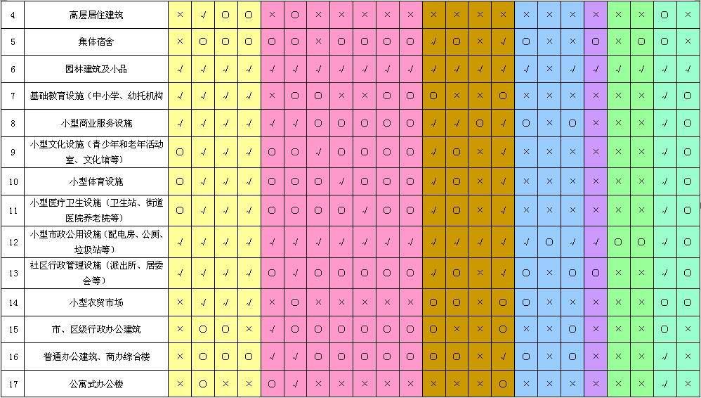 二、《表二 各類建設(shè)用地適建范圍》中未列入的建設(shè)項目,應(yīng)由城市規(guī)劃行政主管部門根據(jù)對項目用地進(jìn)行的周邊環(huán)境影響及外部基礎(chǔ)設(shè)施條件綜合評估結(jié)果,具體核定適建范圍。