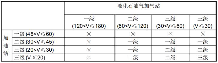 加油和液化石油氣加氣合建站的等級(jí)劃分(單位: m3)