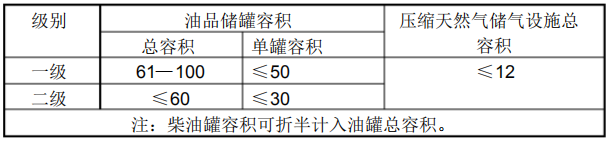 加油站的等級(jí)劃分(單位: m3)