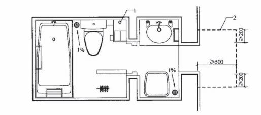 1.1.9當(dāng)衛(wèi)生間空間狹小,布局時(shí)應(yīng)綜合考慮衛(wèi)生間門的開啟方式及方向、潔具布置、洗衣機(jī)位置、淋浴隔間及其開門方式、采暖設(shè)施等相互關(guān)系,避免影響潔具安裝及使用。