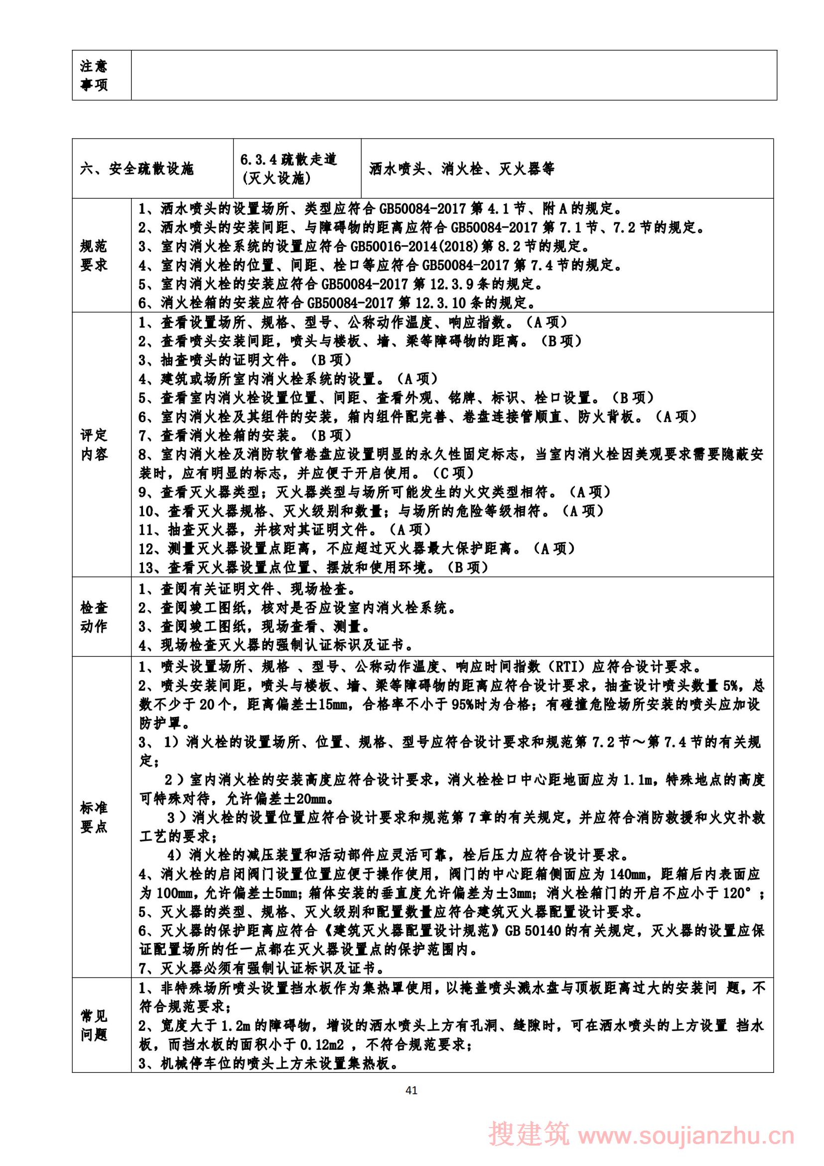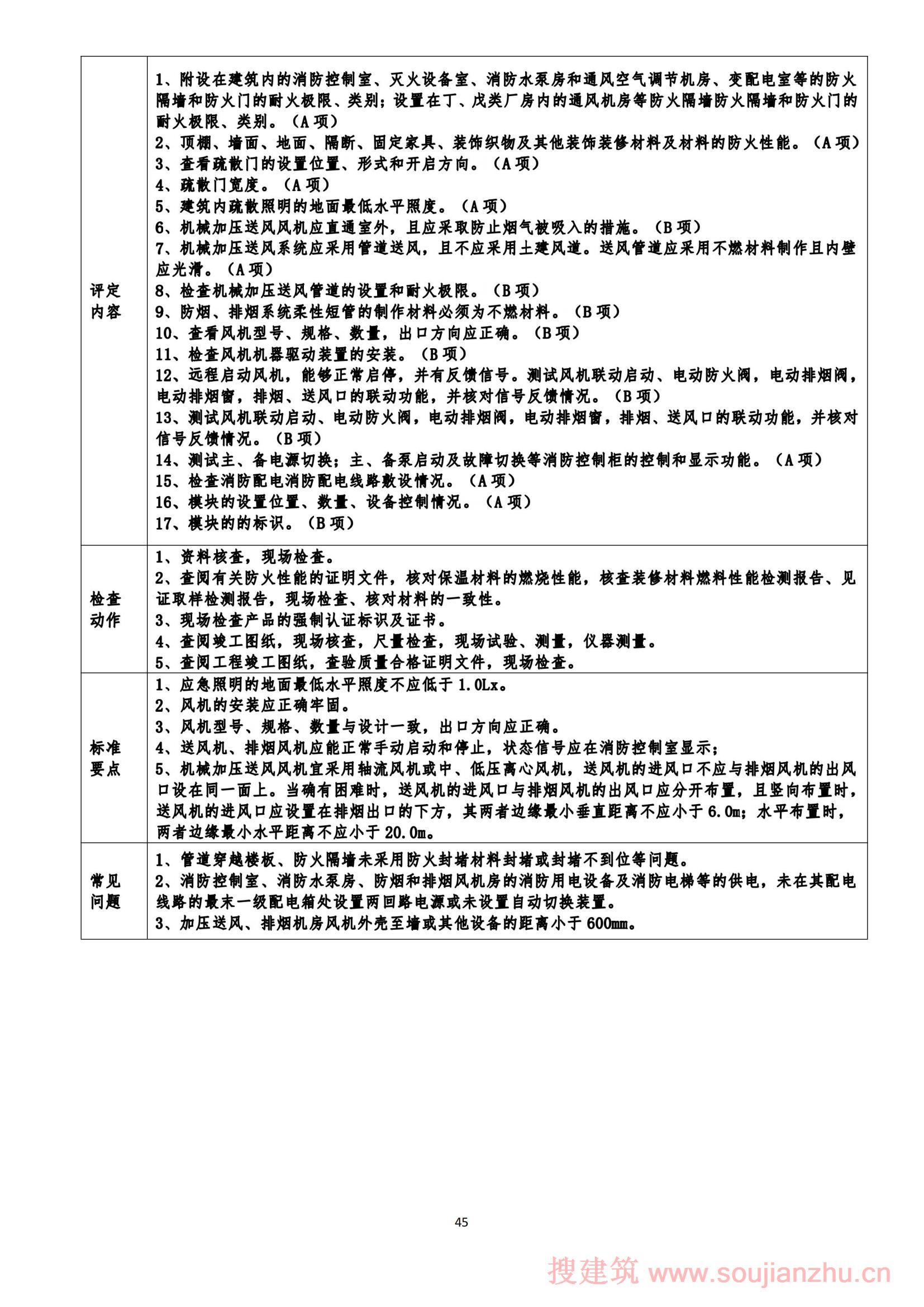 本手冊(cè)按先會(huì)議室查閱資料核對(duì)后去現(xiàn)場查看測試,先室外后室內(nèi),先公共設(shè)備用房后樓層消防設(shè)備房,先地下樓層(含公共設(shè)備用房)后首層、減壓分區(qū)層、標(biāo)準(zhǔn)層、頂層、屋頂層的路徑原則進(jìn)行組織驗(yàn)收,對(duì)驗(yàn)收部位涉及到的全專業(yè)消防設(shè)施進(jìn)行評(píng)定。共分為三個(gè)章節(jié):第一章,常用工作程序和常用路徑介紹,第二章,驗(yàn)收部位、節(jié)點(diǎn)表;第三章,消防驗(yàn)收部位相關(guān)的規(guī)范要求、評(píng)定內(nèi)容、檢查動(dòng)作、標(biāo)準(zhǔn)要點(diǎn)、常見問題、注意事項(xiàng)等內(nèi)容進(jìn)行匯總,給消防驗(yàn)收人員提供參考。