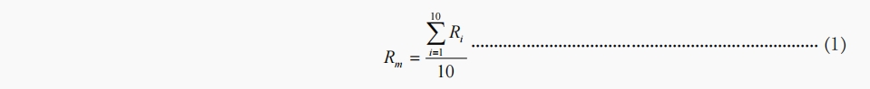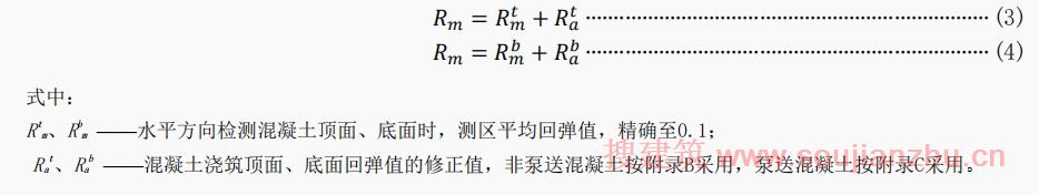 c) 從每一試塊的 16 個回彈值中分別剔除其中 3 個最大值和 3 個最小值,然后再求余下的 10 個回彈值的平均值,計算精確至 0.1,即得該試塊的平均回彈值 Rm;