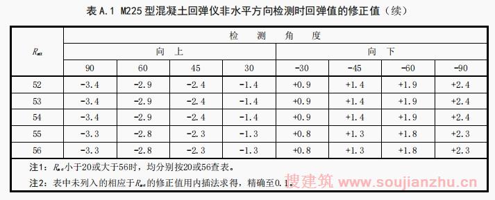附錄 A (規(guī)范性) M225 型混凝土回彈儀非水平方向檢測時回彈值的修正值