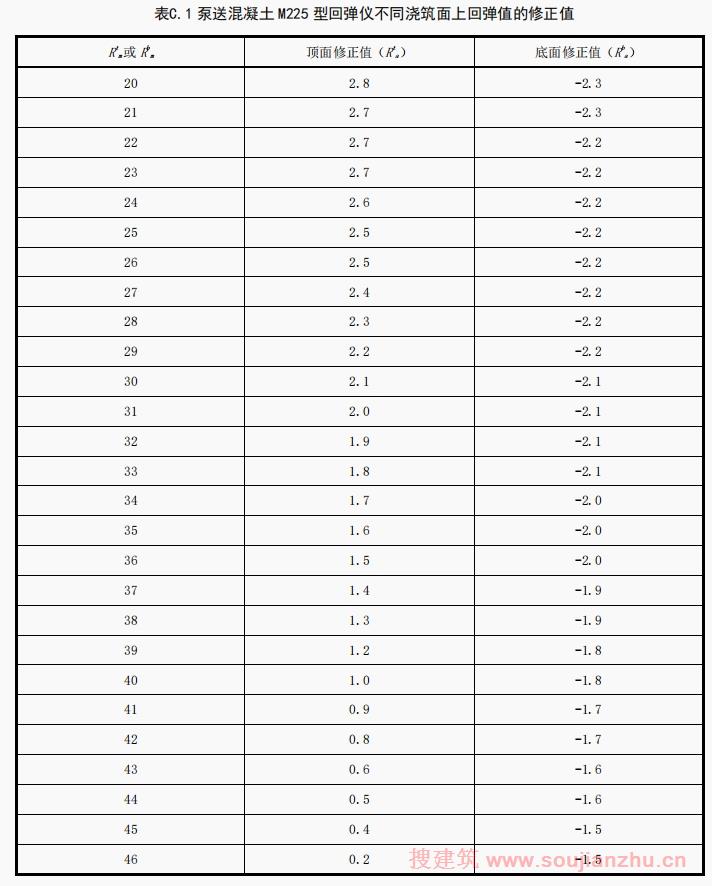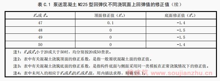 l) 更改了泵送混凝土 M225 型回彈儀不同澆筑面上回彈值的修正值及相關附錄表(見附錄 C,2013年版的附錄 C)。