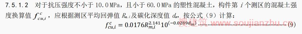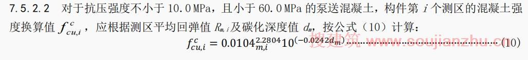 7.5.4.2 對于抗壓強度不小于 10.0 MPa,且小于 60.0 MPa 的混凝土抗壓強度換算值,尚應按公式(12)