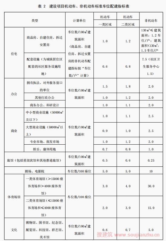 各類(lèi)建設(shè)項(xiàng)目配建的停車(chē)位指標(biāo)不應(yīng)小于表2的規(guī)定。