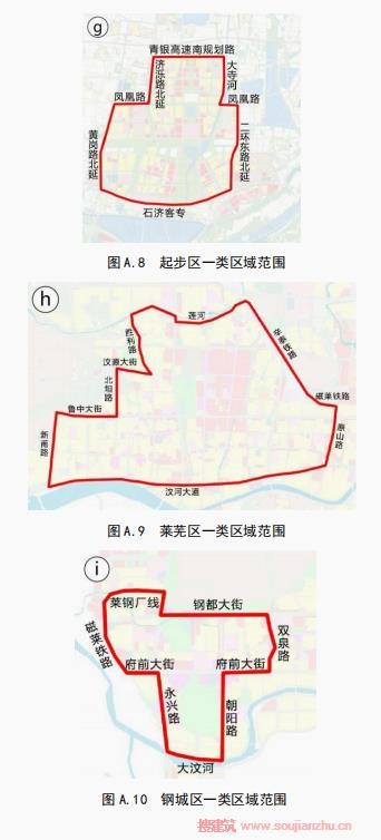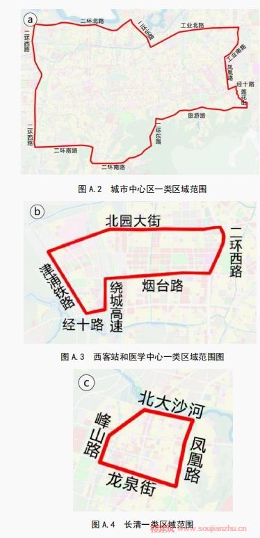 圖A.1~圖A.10給出了配建停車(chē)設(shè)施一類(lèi)區(qū)域和二類(lèi)區(qū)域分區(qū)范圍。